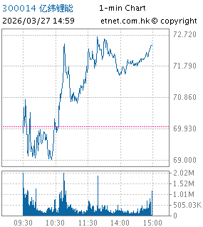 | 300014 | 亿纬锂能 | 72.400 | +2.400 | +3.429% | 65.09亿 | 36.3819 | 深股通 # | |