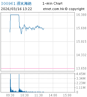 | 300961 | 深水海纳 | 15.800 | +15.751% | |