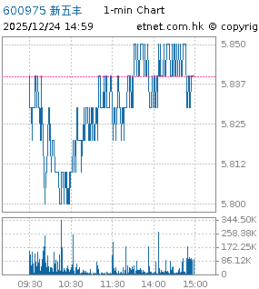 | 600975 | 新五丰 | 5.840 | 0.000 | 0.000% | 5.55千万 | 194.6667 | 沪股通 | |