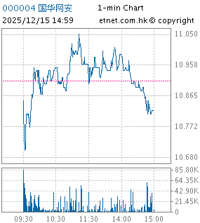 | 000004 | *ST國華網安 | 10.960 | +0.050 | +0.458% | 1.40千萬 | -- | ||
