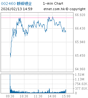 | 002460 | 贛鋒鋰業 | 66.460 | -0.360 | -0.539% | 14.24億 | -- | 深股通 | |