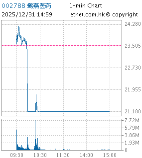| 002788 | 鷺燕醫藥 | 21.180 | -2.350 | -9.987% | 13.69億 | 23.7978 | ||