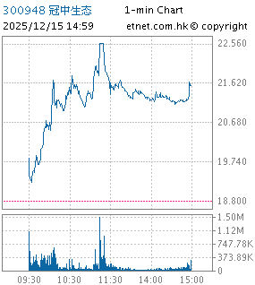 | 300948 | 冠中生態 | 21.620 | +2.820 | +15.000% | 5.24億 | -- | ||