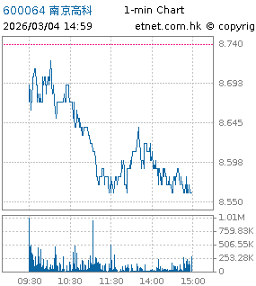 | 600064 | 南京高科 | 8.560 | -0.180 | -2.059% | 2.19億 | 8.5858 | 滬股通 | |