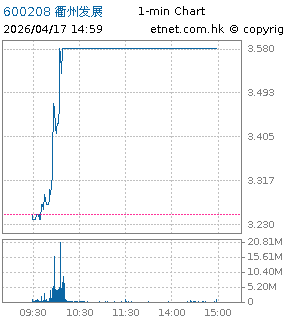 | 600208 | 衢州發展 | 3.580 | +0.330 | +10.154% | 5.53億 | 29.8333 | 滬股通 | |
