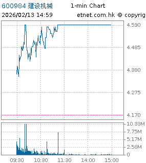 | 600984 | 建設機械 | 4.590 | +0.420 | +10.072% | 6.44億 | -- | 滬股通 | |